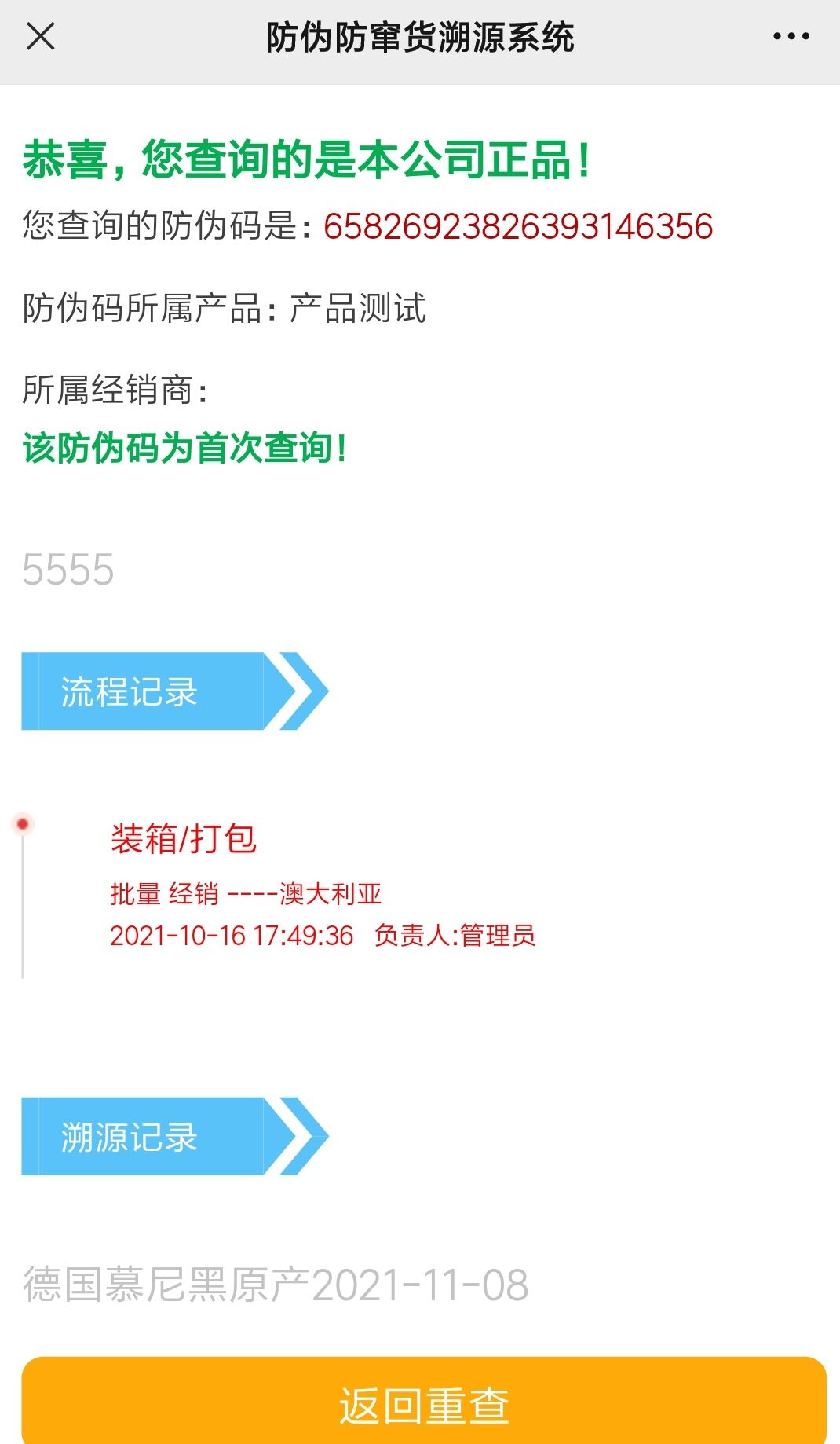 好用實用的一物(wù)一碼防僞溯源防串貨系統,無限制防僞碼數量,支麗術持裝箱,大小箱,自定義溯源流程,支持自定義代理,坐用可指定品牌查詢頁面,支持PC、手機(jī生國)、微信(xìn)内掃碼等多種查詢方式。