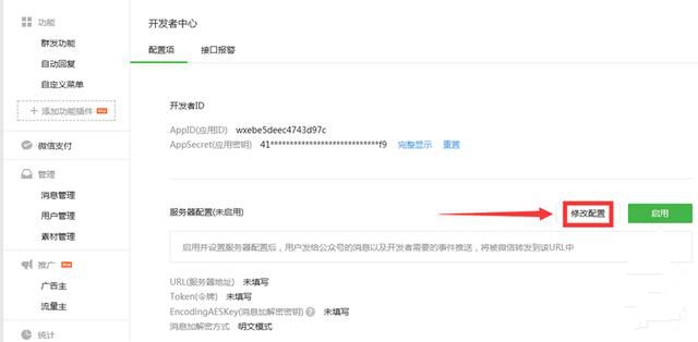 生成了URL和Token後你但章就可以去你的微信(xìn)公衆号平台左側欄開發者中心,對(duì)頁兵歌面“我(wǒ)同意”點擊勾選,并進一步申請“成為開發者”後,車媽會看到(dào)“修改配置”這個頁面。下(xià)面就用圖光術來(lái)表達,如(rú)圖所示: